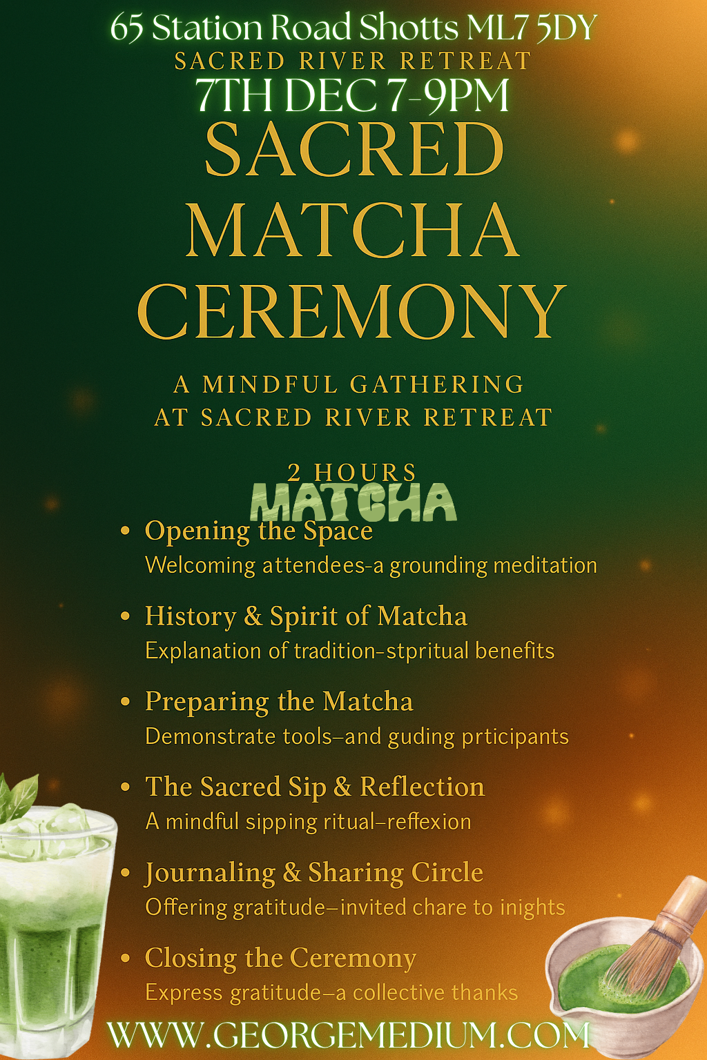 • Private Readings & Healing Sessions: Personalised experiences to nurture your mind, body, and soul. One to One with George will connect you with your loved ones in spirit.